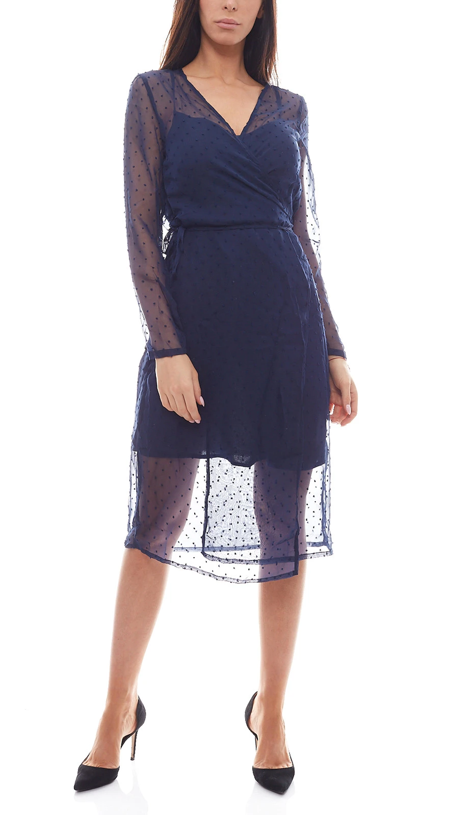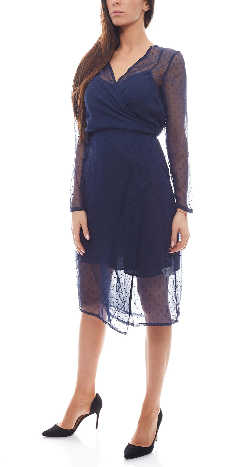 NA-KD x Qontrast Wickel-Kleid durchsichtiges Damen Pünktchen-Kleid Blau