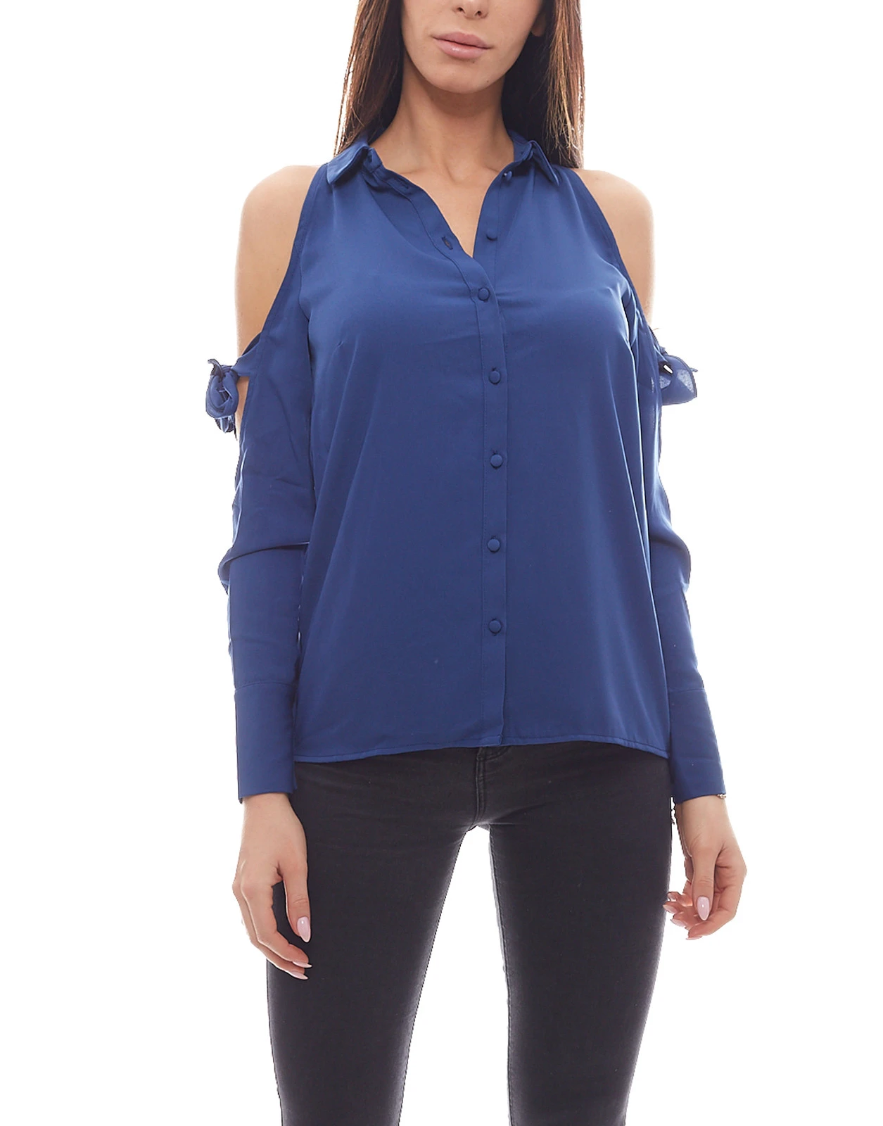 NA-KD x THERESE LINDGREN Cut-Out Bluse klassisches Damen Shirt Blau