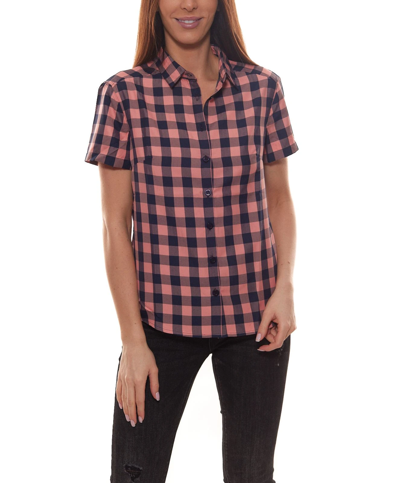 odlo Mythen Wander-Bluse bequeme Damen Karo-Bluse mit hohem Tragekomfort Blau/Rosa