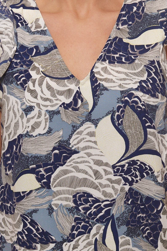 ONLY Beatrice Life V-Neck Shirt florales Damen Blusen-Shirt Blau