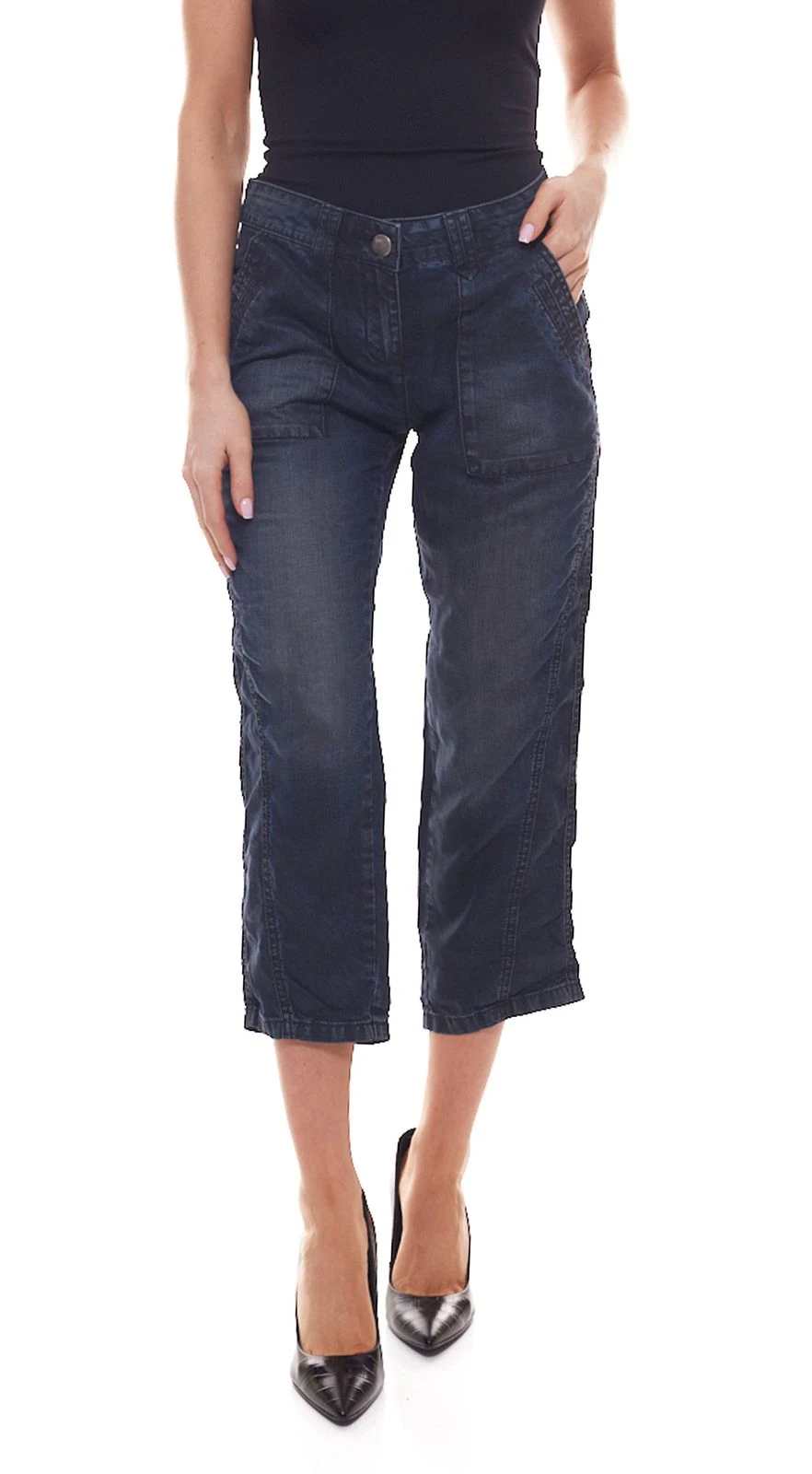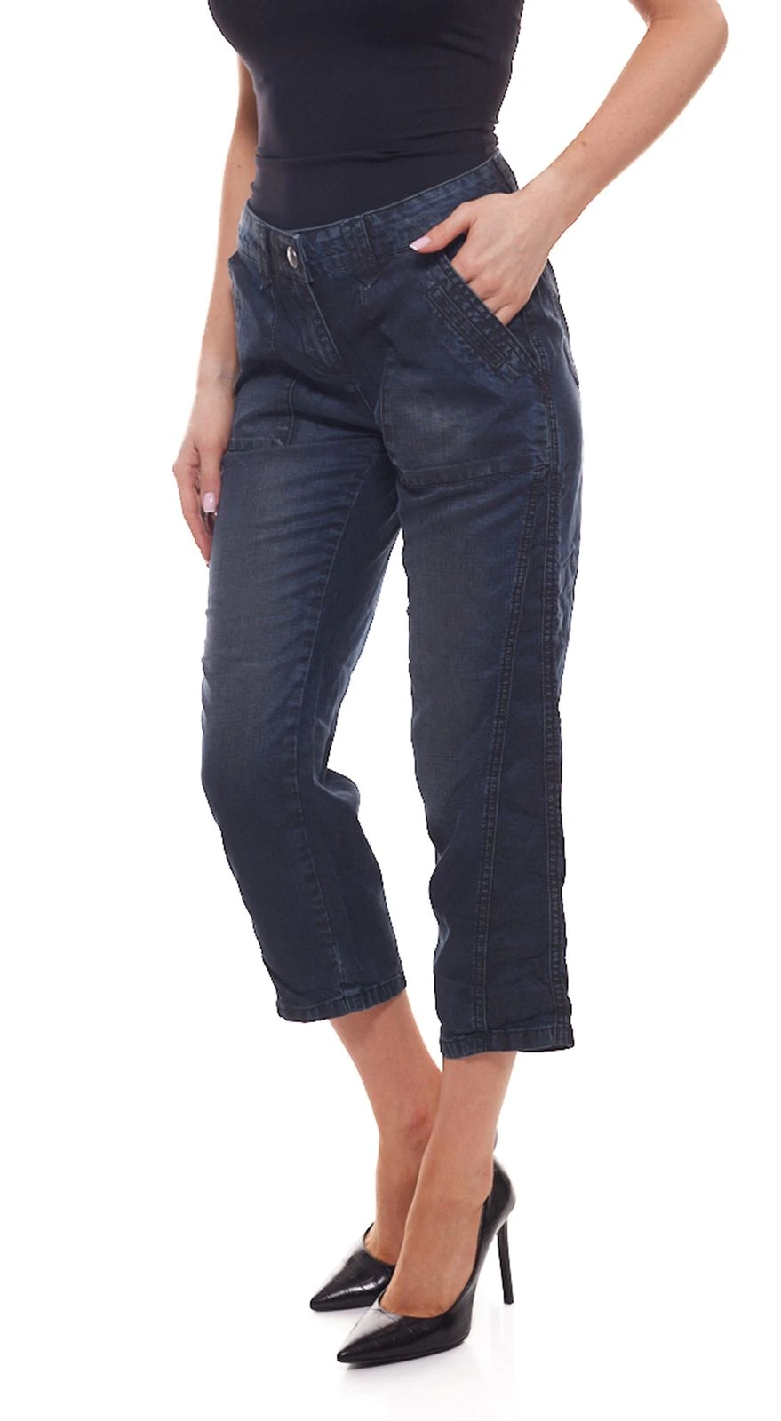 OPUS Melva Jeans modische Damen Capri-Hose im Denim-Look und Five-Pocket-Style Blau