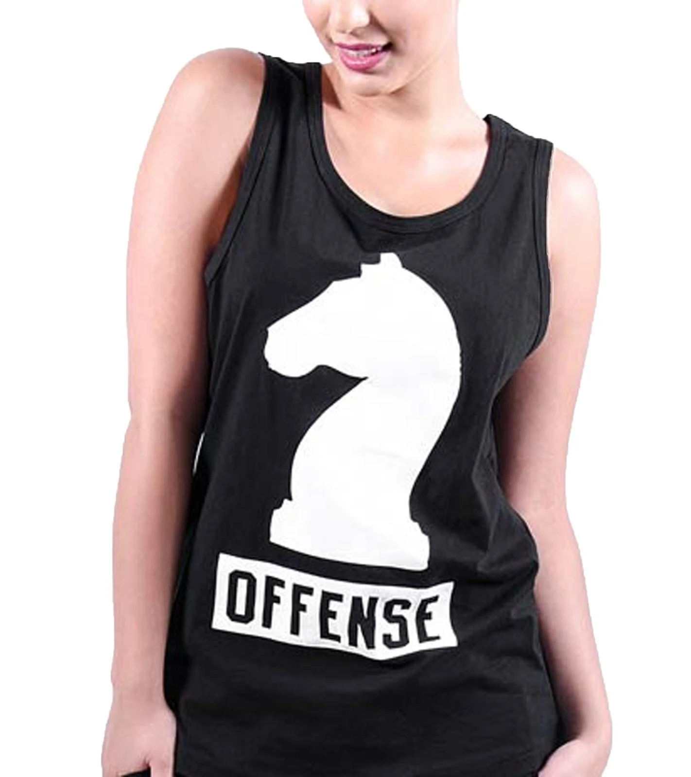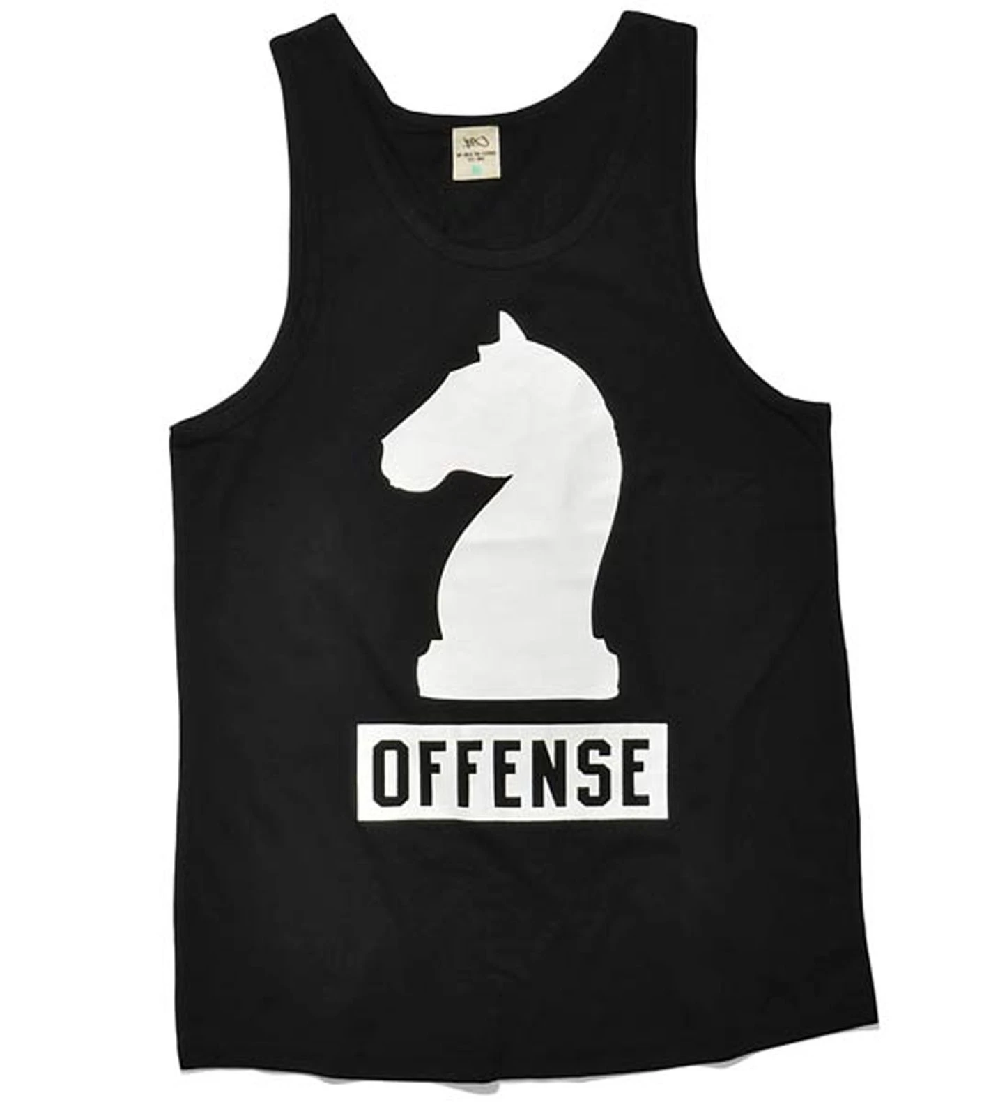 - Schach Springer-Figur auf der Vorderseite mit „Offense“ darunter stehend