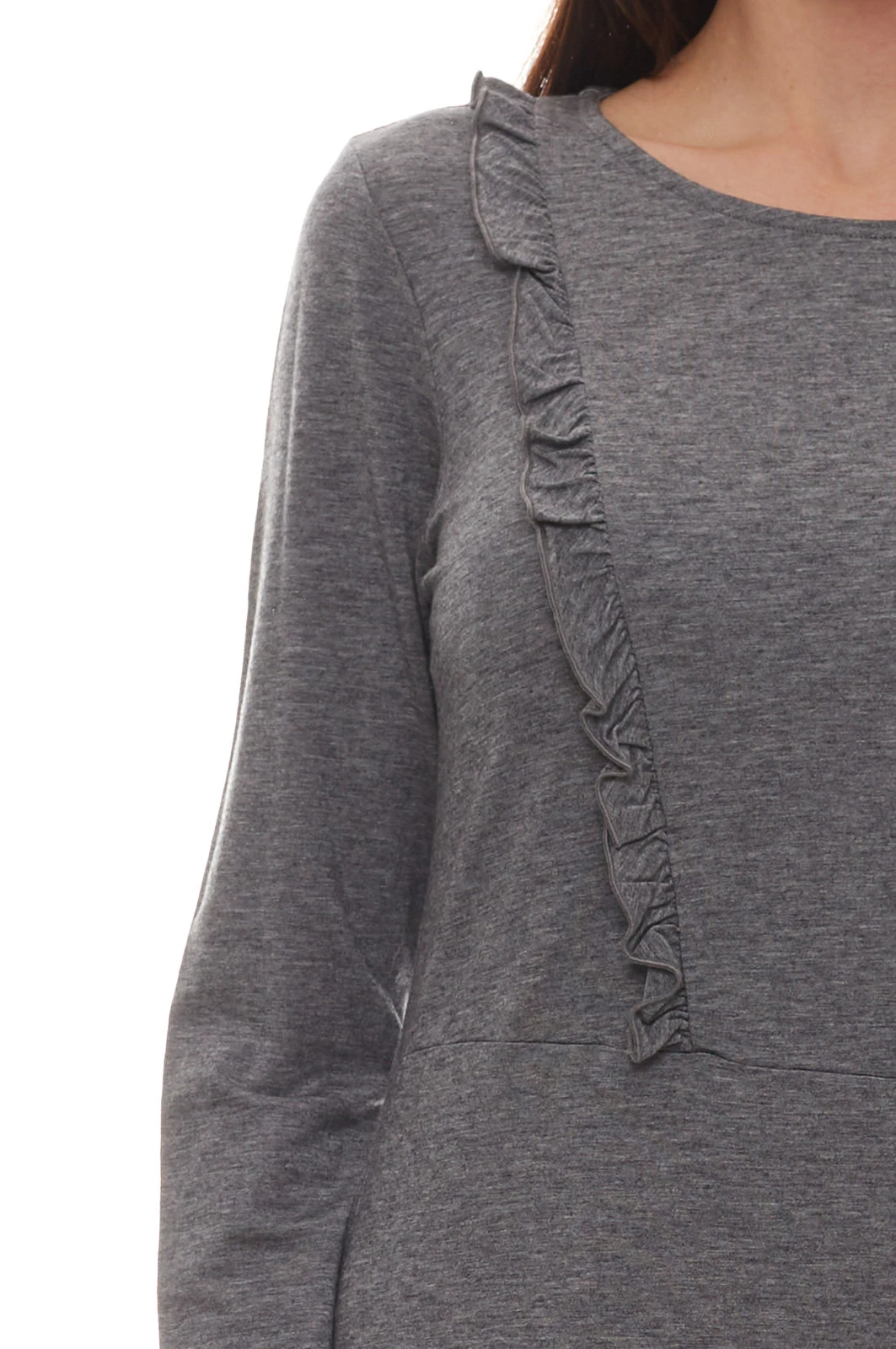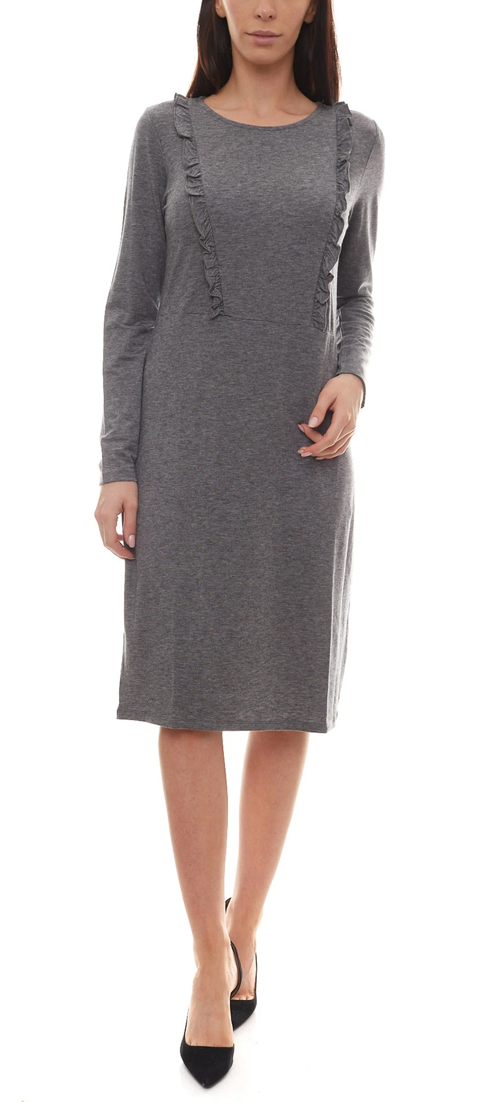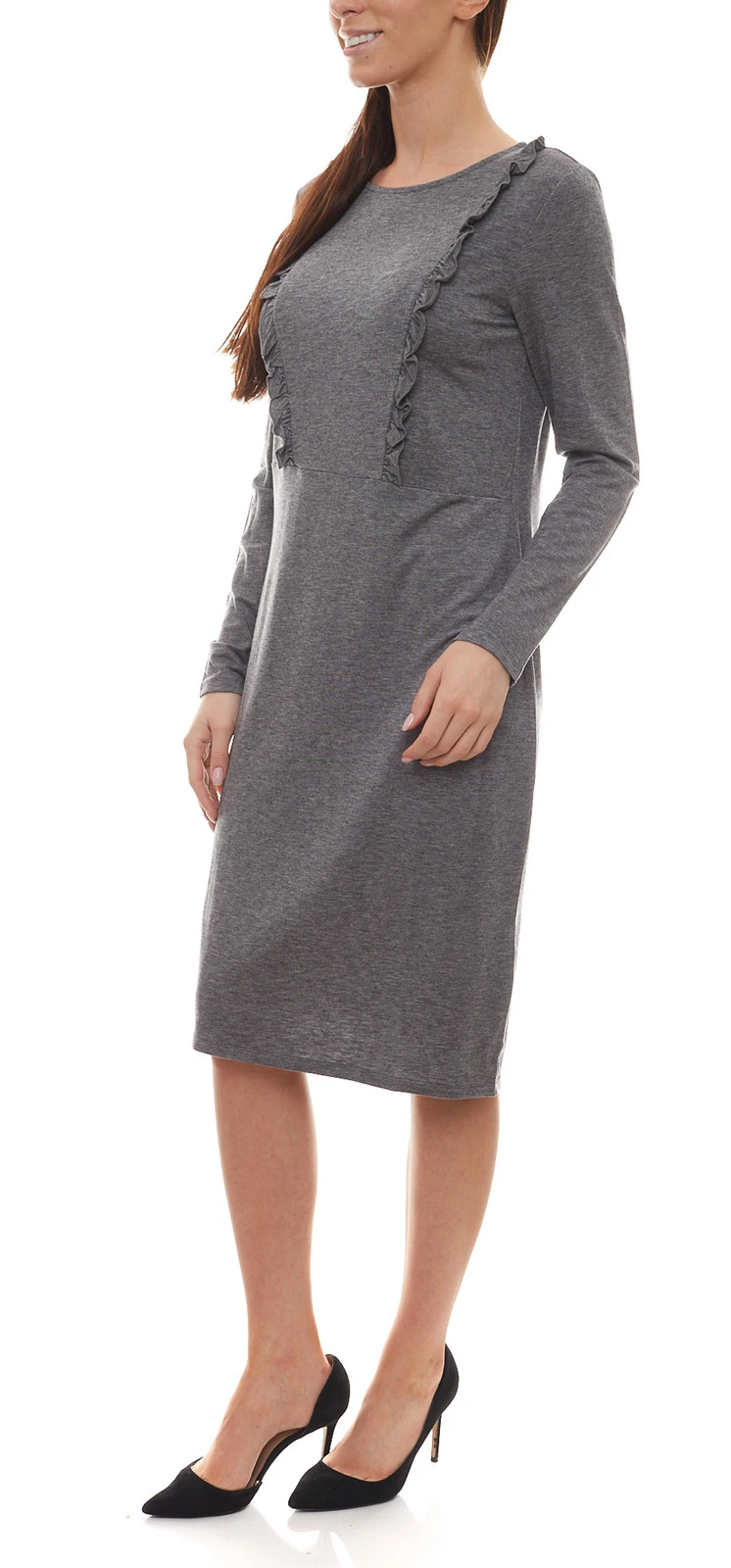 People Tree Indira Jersey-Kleid sportliches Damen Kleid mit Rüschenbesatz Grau