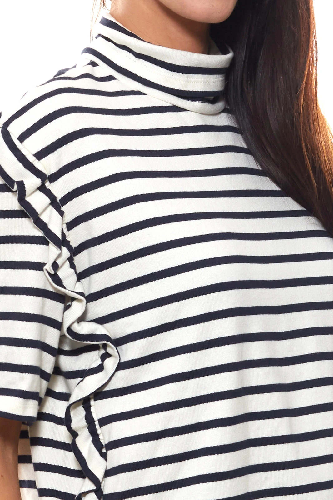 PETIT BATEAU Shirt anziehendes T-Shirt Damen Top mit Volant Polo-Hemd Weiß