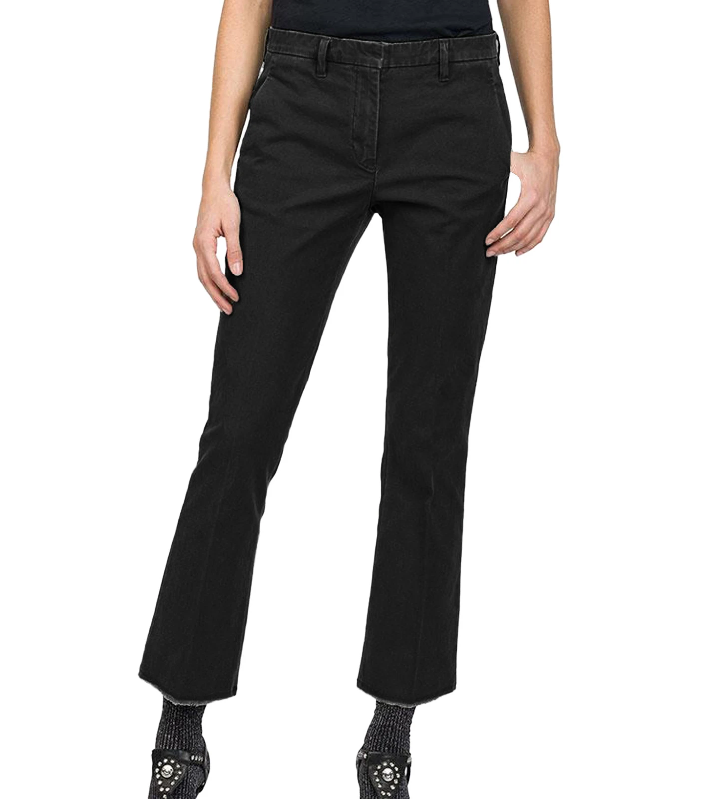 REPLAY Comfort-Fit-Jeans ausgestellte Damen Ankle-Hose mit offenem Saum Schwarz