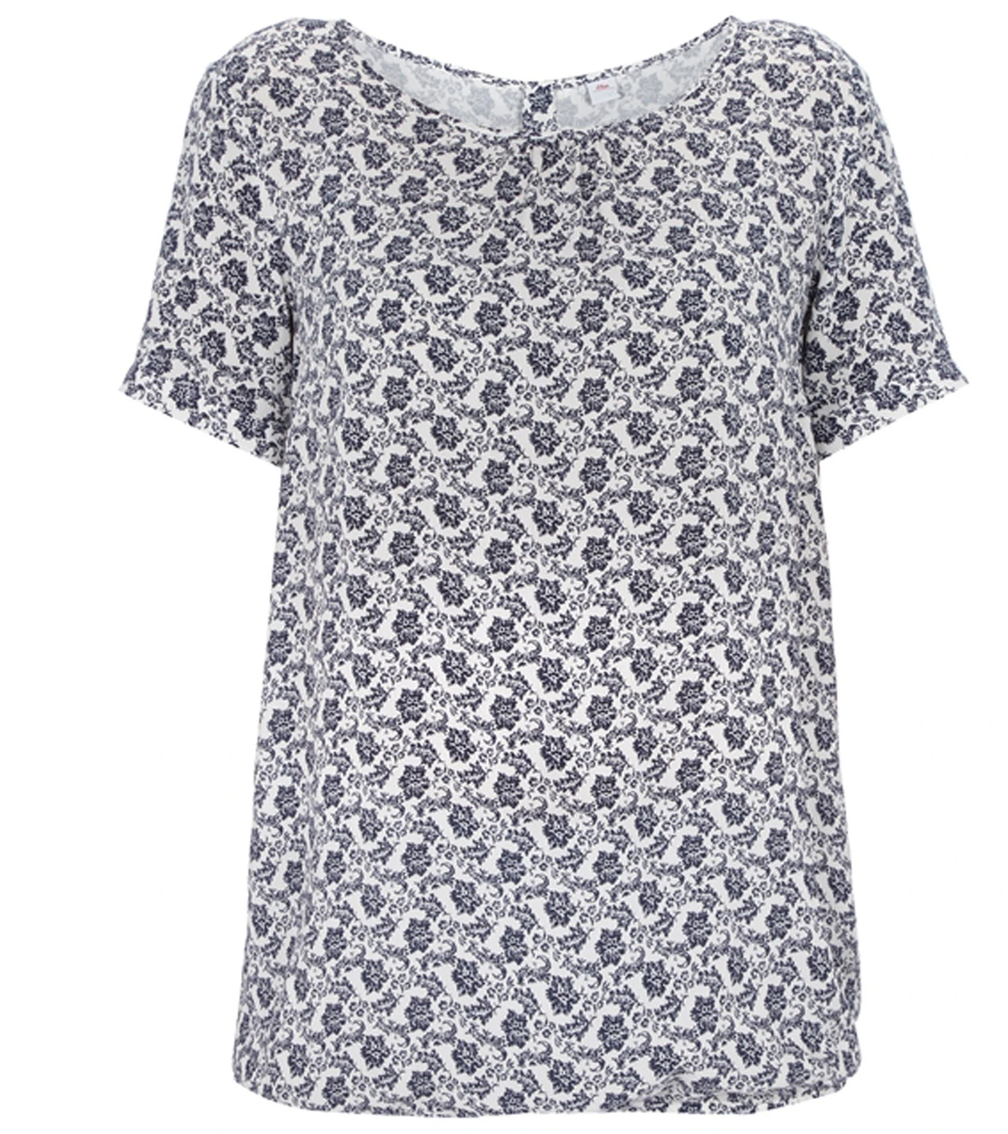 - ein florales All-Over-Muster macht die modische Optik des Blusenshirts von S.Oliver aus