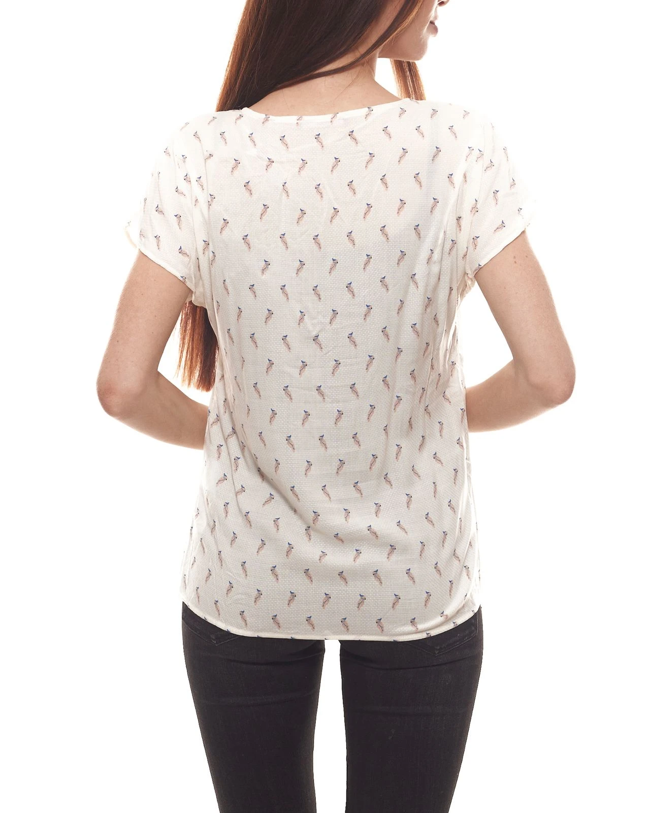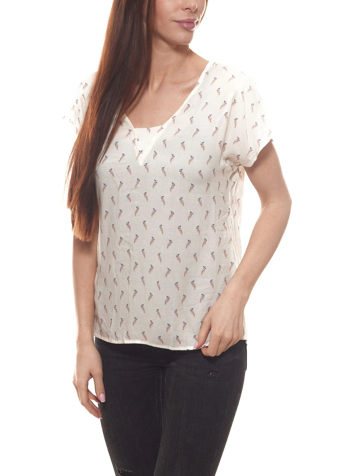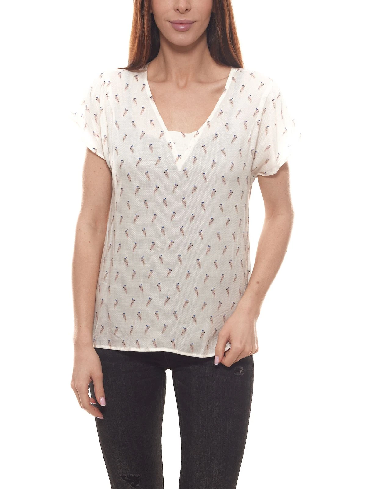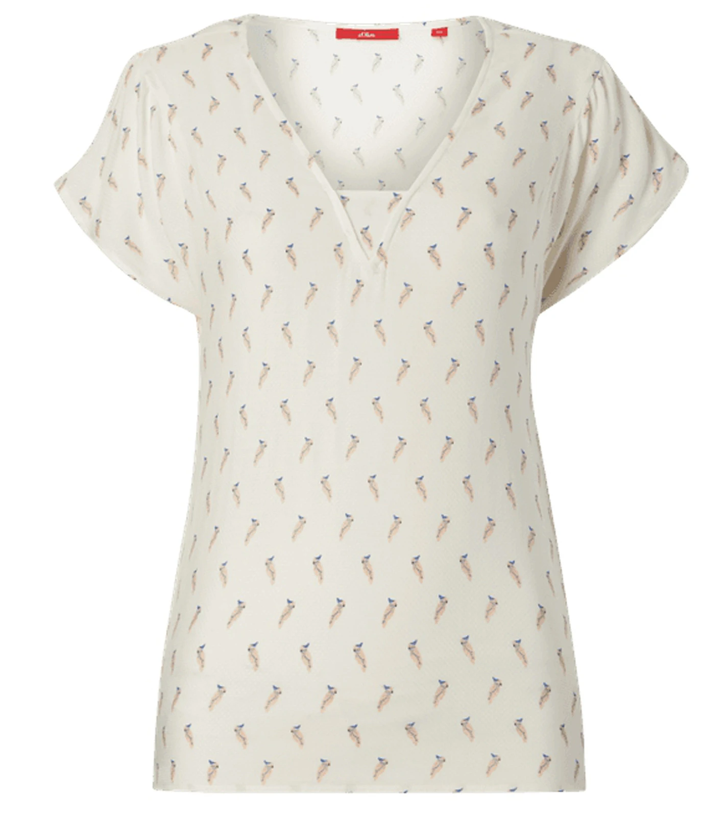 s.Oliver Kurzarm-Bluse feminines Damen Blusen-Shit mit Allovermuster Creme