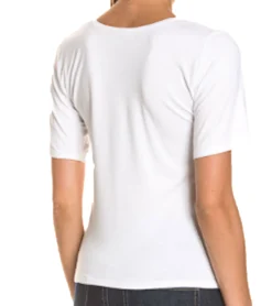 Lekra T-Shirt Weiches Damen Kurzarm-Shirt Mit Pailletten-Muster Weiß