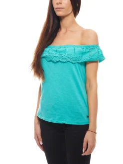 KAPORAL Bandeau-Shirt Strukturiertes Damen Carmen-Shirt Mit Volant Grün