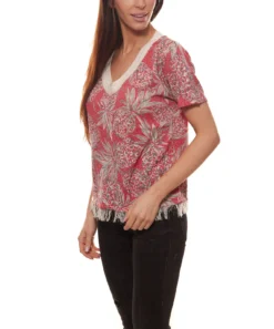 TUZZI Strick-Shirt Modisches Damen Fransen-Shirt Mit Ananas-Druck Rot/Weiß