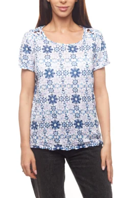Street One Blusen-Shirt Gemustertes Kurzarm T-Shirt Für Damen Weiß/Blau