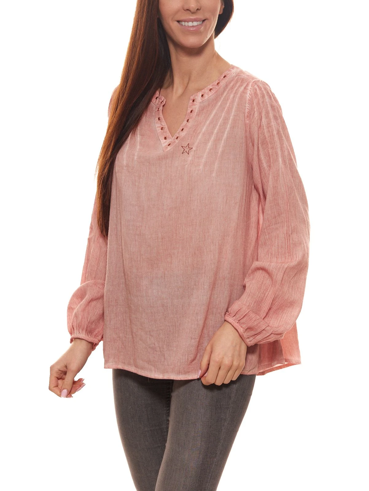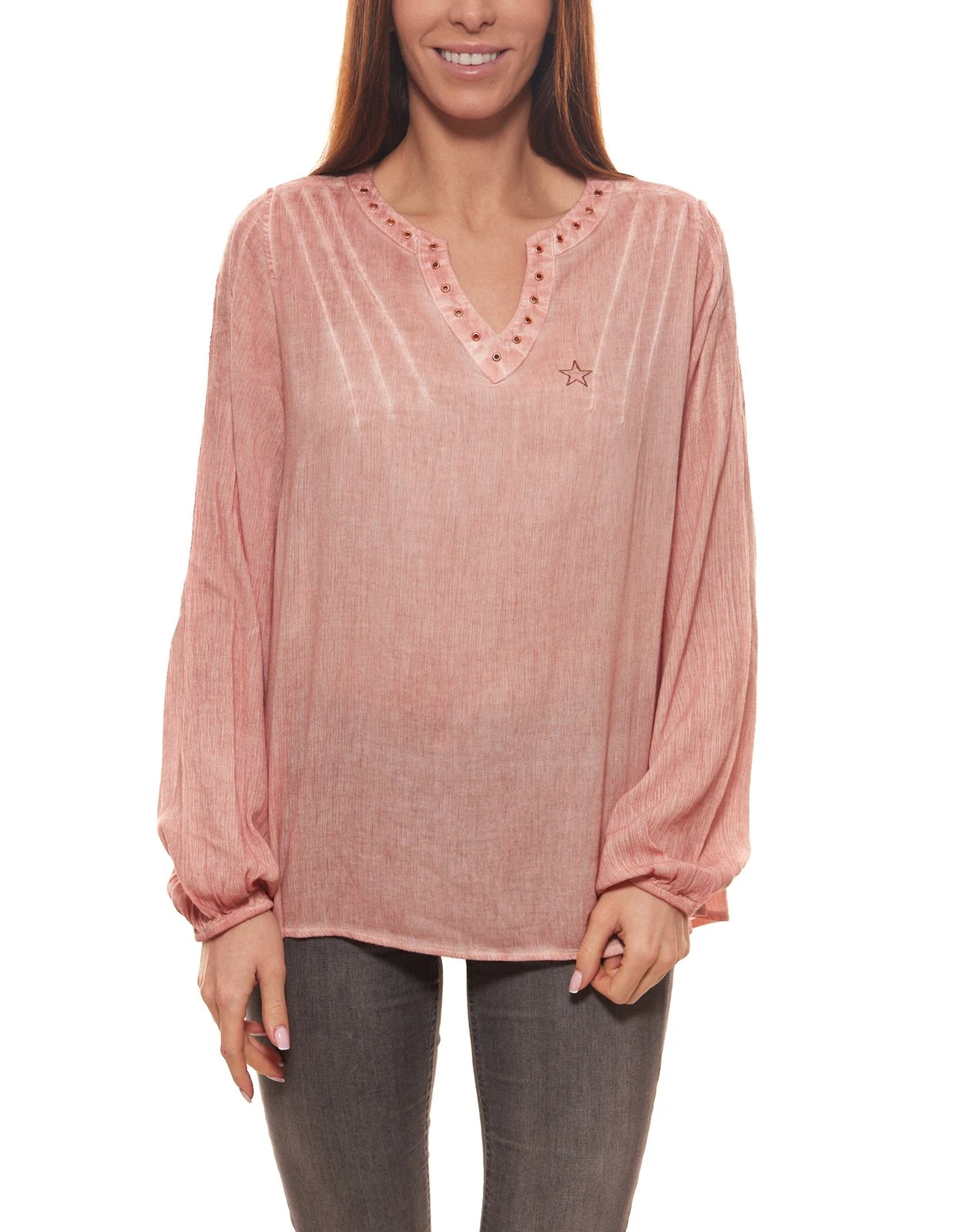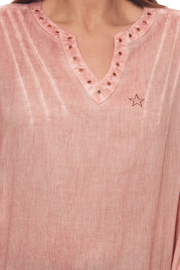 TIMEZONE Tunika lässige Damen Bluse mit Stickerei und Abnäher Rosa
