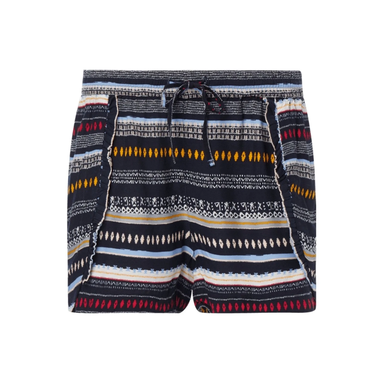 UNITED COLORS OF BENETTON Shorts Luftige Damen Sommer-Hose Mit Blätter-Muster Schwarz/Weiß