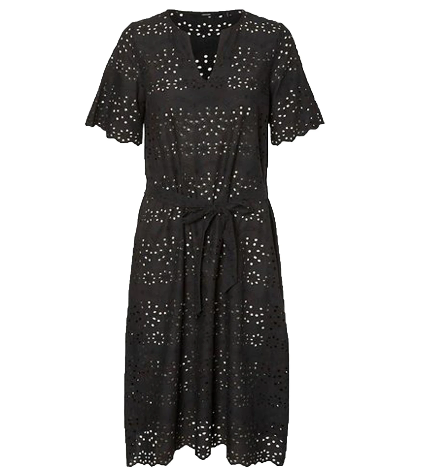 VERO MODA Karolin Kleid verspieltes Damen Midi-Kleid mit Lochspitze aus Bio Baumwolle Schwarz
