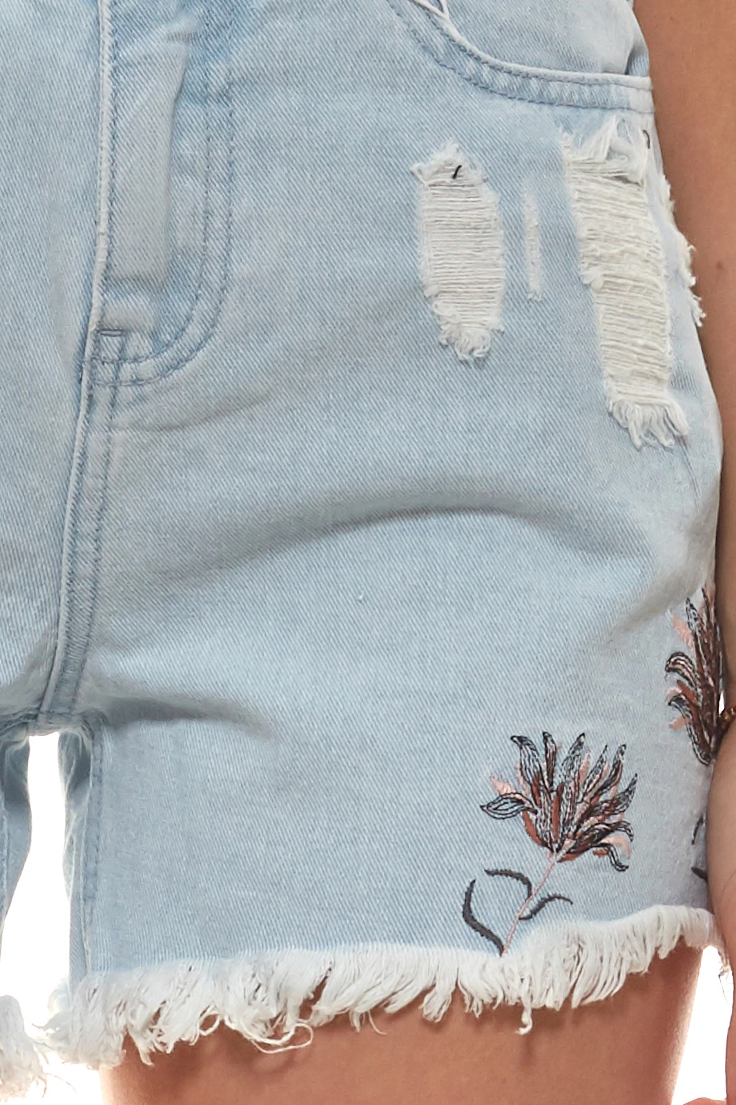 VILA Hose moderne Damen Jeans-Shorts mit gestickten Blumen Hellblau