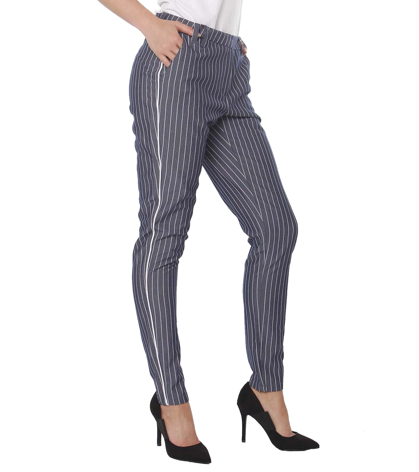 ZHRILL Sophia Streifen-Hose stylische Damen Stoff-Hose mit Flügeltaschen Blau